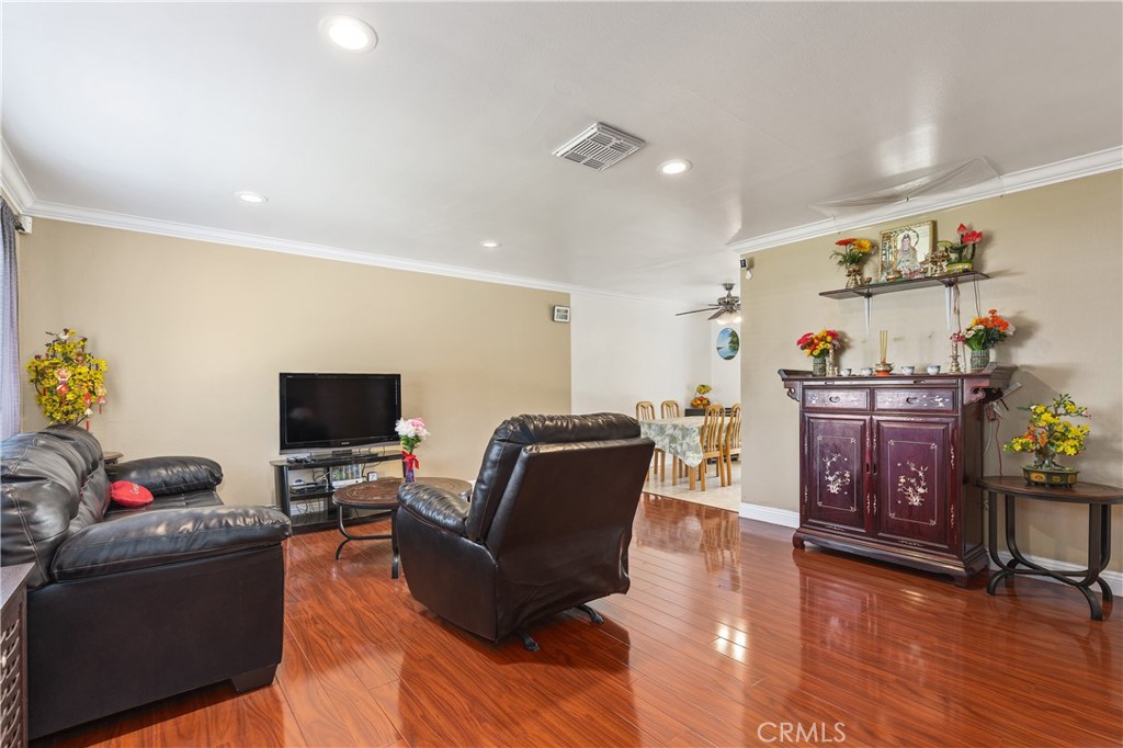 What an opportunity!!! This single level detached home has TONS of potential with a converted garage offering a potential ADU with a separate living space, kitchenette, additional bedroom and full bath plus laundry hook-ups! Garage conversion is unpermitted. The main residence contains 1220 square feet of living space with 3 beds and 1.5 baths. A long, spacious driveway allows for plenty of parking. There are laminate wood-style floors and new doors throughout most of the house, recessed lighting in the living room, and an indoor laundry room. A well-manicured backyard features a patio, shed, and fruit trees (fig, plum, persimmon, guava, dragonfruit, and cherimoya). With a floor plan conducive to opening up between the kitchen and living room and a newer roof, this house could be turned into your dream home! Just a few blocks from A-rated La Quinta High School, Mile Square Park, Little Saigon, Fountain Valley, and the 405 FWY, this is a prime location with top-rated schools, parks, and the Santa Ana River within walking distance.