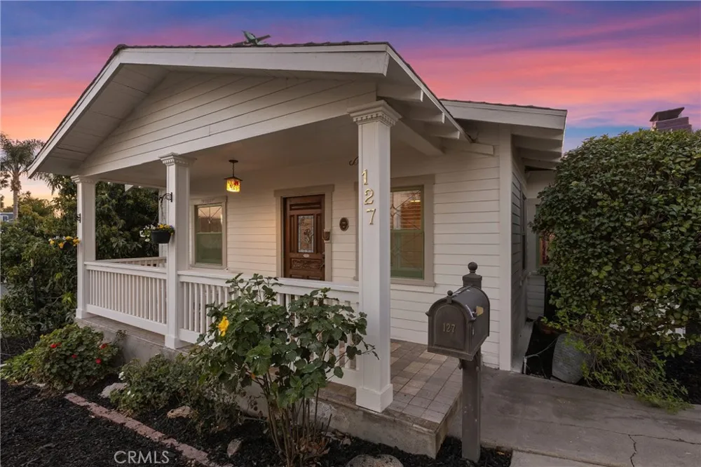 PRIME LOCATION HISTORIC HOME WITH MODERN UPGRADES! Save on property taxes with this registered historical landmark under the Mills Act, reduce energy costs with solar panels, and explore potential income opportunities with the ability to construct multiple ADUs. Situated on a large 7,000 sq ft lot with rear vehicular access, ideal for RV or boat parking. Known as the Glen Dunkle House #54, this 1923 home is located in the Redwood Avenue Historic Area and registered with the Brea Historical Society. The 2-bedroom residence blends preserved architectural details with practical updates and offers flexibility for future expansion or additional income. Interior features include a tiled fireplace, new laminate flooring, fresh paint, stained glass windows, cedar-lined closets, ceiling fans, and abundant natural light. The bathroom includes a clawfoot tub, walk-in shower, and classic tile finishes. The kitchen offers butcher block countertops and island, ample cabinetry, and connects to an indoor laundry and pantry. A covered outdoor room provides approximately 200 sq ft of additional usable space. The backyard includes fruit trees, a pond, stone walkways, storage sheds, and access to a detached two-car garage with potential for conversion to a studio, office, expanded garage, or ADUs. Additional upgrades include new AC and ducting, rear gated access, and solar panels. Conveniently located near Downtown Brea, Brea Mall, shopping, dining, civic amenities, and top-rated schools.