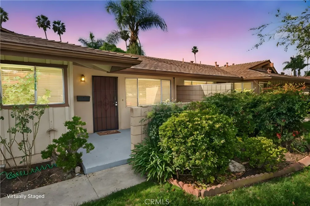 Welcome to paradise at Coco Palms! Located in the heart of Fullerton, this beautifully maintained single-level condo offers an open and airy floor plan with 933 square feet of living space, featuring 2 bedrooms and 2 bathrooms designed for comfort and ease. Step inside to find laminate and tile flooring throughout, creating a clean, modern feel. The primary suite is a relaxing retreat with crown molding, ceiling fan, laminate floors, window blinds, and a custom built-in closet system. The primary bathroom is finished with tile flooring, Corian countertops, newer fixtures, and a tiled walk-in shower. The second bedroom also features crown molding, ceiling fan, laminate flooring, window blinds, and a built-in closet system—perfect for guests, a home office, or shared living. Bathroom two includes tile flooring, a tub/shower combo, tile countertops, over-mount sink, newer fixtures, and classic wainscoting. The family room is bright and inviting with laminate flooring, ceiling fan, and natural light flowing in through large windows. The kitchen is thoughtfully updated with stainless steel appliances, Formica countertops, tile backsplash, stainless steel sink, track lighting, and window blinds—ideal for everyday living and entertaining. Enjoy your semi-private front patio, offering great natural sunlight and a peaceful place to relax.. The Coco Palms community features a gated pool and spa, expansive greenbelt areas, community laundry facilities, and assigned one-car carport parking with a lockable storage bin. Ideally located near the vibrant restaurants, shops, and entertainment of Downtown Fullerton, this home combines comfort, convenience, and community living at its best.