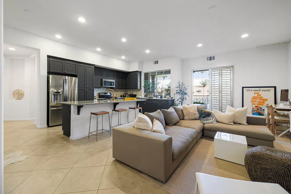 Wonderful Sorrento, Vista Fiore Model. Pride in ownership shows as you enter this open floor plan. One bedroom with one and a half bath and an office area that can easily be used for formal dining or a guest area. The kitchen is a chef's dream with granite slab counters, stainless cooktop and plenty of cabinet space to store your favorite culinary gadgets. A spacious patio offers peace and solitude and plenty of protection from the sun. The attached 2 car garage gives ample storage and keeps your vehicle out of the elements. Owned solar panels will dramatically lower your electric bills. A 30,000 sqft. Clubhouse offers all you need, 2 restaurants, 100 seat movie theater, library, sports bar / game room, gym, heated pool and spa, miniature putting coarse and much much more. Located just minutes from El Paseo, Eisenhower Medical Center, McCallum Performing Arts Center and numerous grocery options within walking distance. Call today to set up your tour.