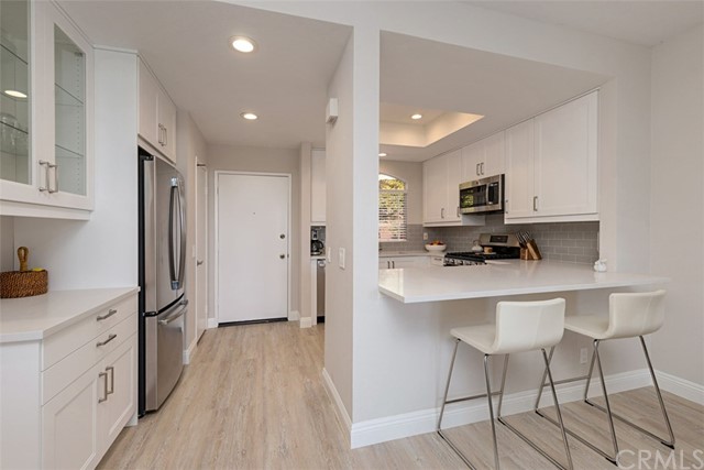 Available April 1st 2023. Furnished VIEW condo in gorgeous beach close community of La Vista. This condo is a brand new remodel with all new stylish finishes throughout and an amazing VIEW. Brand new furnishings make this home fresh, beachy-modern and ready to call home. Walk into the light and airy feeling of the open floor plan. The kitchen boasts new white shaker cabinets, quartz counter tops and stainless steel appliances. The kitchen has been modified with open concept living. Breakfast bar is added for additional seating. The dining room seats 7 plus has a view of the flat screen tv on a swivel mount. The family room includes ample seating and a new sleeper couch to accommodate extra guests. Enjoy the serene golf course, mountain and lake views from the living area, primary bedroom and patio. There are 2 primary suites. The first primary bedroom offers a comfortable king sized bed with new cozy bedding and a flat screen tv. There is a large walk in closet and a newly remodeled en-suite bathroom. The secondary suite has a new queen sized bed and a newly remodeled en-suite bathroom. Inside laundry includes a full sized washer and dryer. Parking is simple with a one garage and additional parking spots close by. This beach close location truly feels like you are on vacation. Enjoy the community pools, spa and fitness center. Close by to popular beaches, hiking trails, shops, restaurants. Easy access to the freeways and toll roads and major airports. Price varies based on term $4950 1 month, $4750 2-3 months, $4450 4-5 months, $3950 6 months or longer. Tenant pays cable/internet ($175 appx), owner pays all utilities with a $100 cap on electricity. $350 cleaning fee. Pet fee based on pet score. Tenant to purchase Roost Insurance for $9.50 per month or provide proof of insurance.