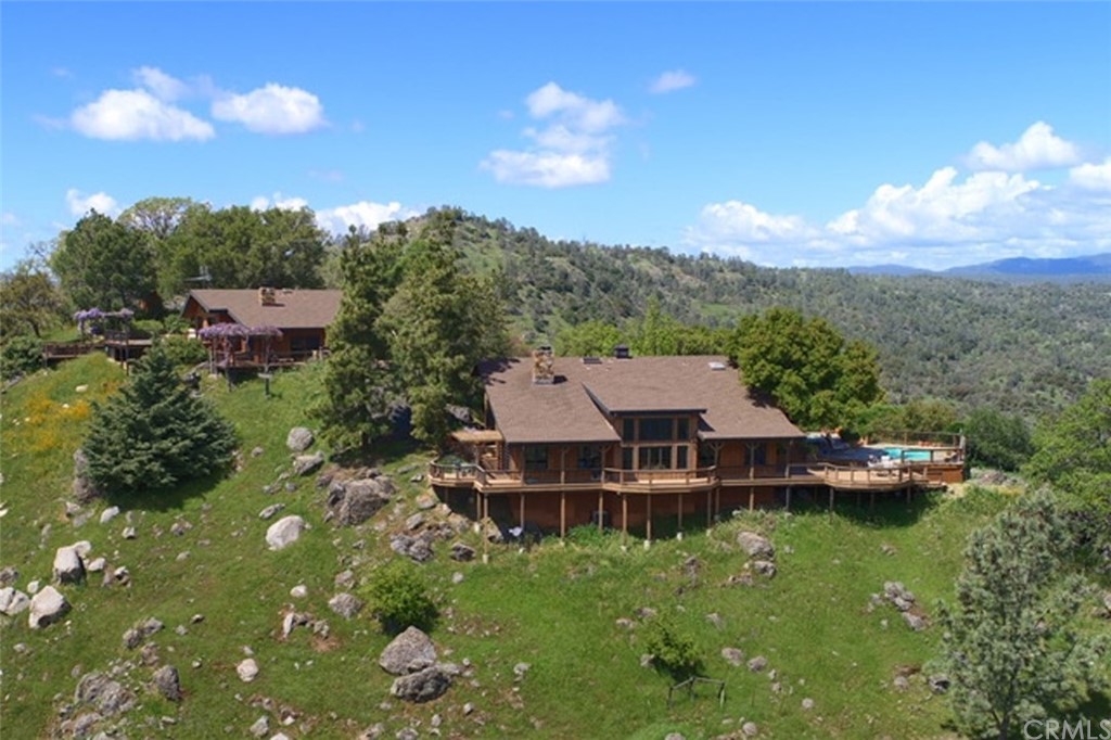 Perched atop a mountain, with interconnecting stairs, are 2 uniquely designed homes totaling 4200 sq. ft. Touted as having the best views in Mariposa County, this gorgeous property known as Indian Peak Ranch is truly one-of-a-kind. The 2 homes, both with spectacular views, sit amongst giant granite boulders on 122 private acres (one 61 AC parcel with existing structures & an additional 61 AC parcel awaiting future development). The distinctive architect designed 2750 sq. ft. split level main home, with high open beam ceilings, has 2 bedrooms & 2 baths, laundry room, large study/family area, all on the upper level, while the stunning great room with living, dining & kitchen/breakfast/pantry are on the lower level. The living area features a massive 2-story stone Rumford fireplace while the study/family area features a cozy wood-burning stove encased in stone. Expansive redwood decks with jaw-dropping views surround the main home along with am in-deck pool & hot-tub set in Mariposa Slate. A spacious 3 car garage is adjacent to the main home. The 1450 sq. ft. split-level guest house, also with in-deck pool, hot-tub & incredible views, and with income potential as a vacation rental, has 2 bedrooms & 2 baths, plus a great room with newly renovated kitchen. Brand new whole house generator just installed! Drive the half-mile paved driveway with views at every turn, to the top of the mountain. Floor plans with these approximate noted sq. ft. are available.